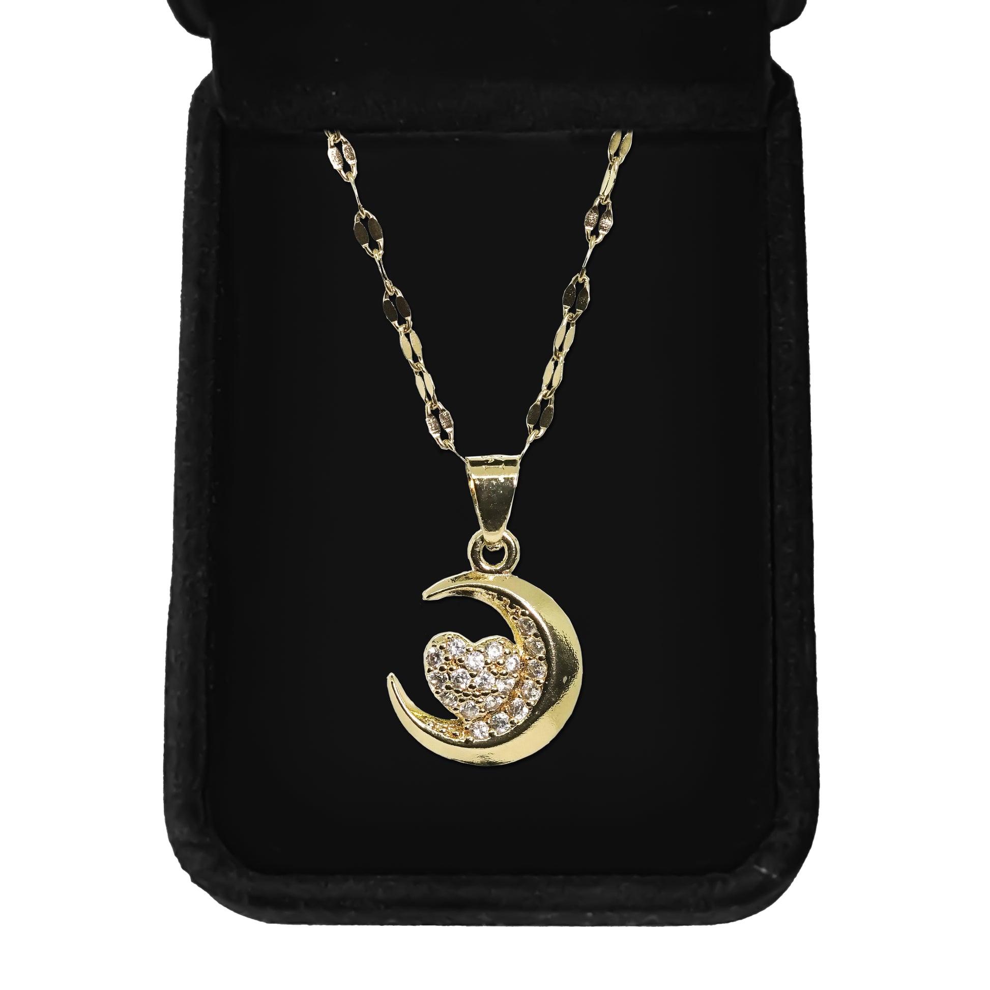 Elegant Crescent Moon and Heart Necklace