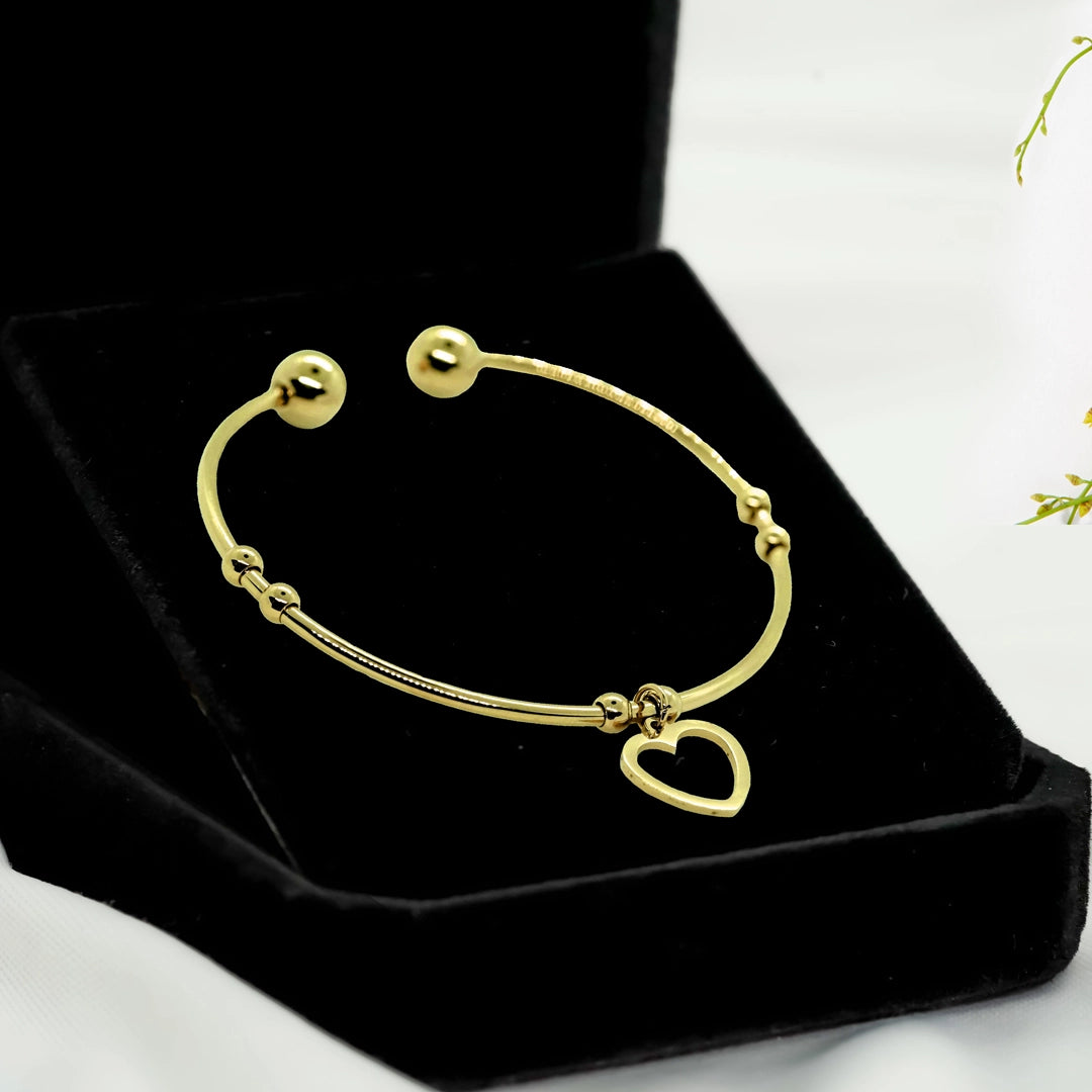 A delicate heart outline that exudes elegance and charm. Whether worn alone or paired with other accessories, it adds a touch of sophistication to any look. Let this bangle be a reminder of the love that surrounds you and the beauty that lies within.